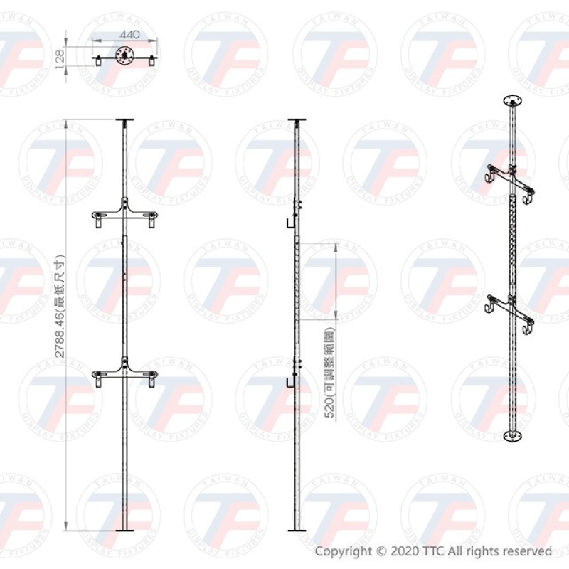 Abmessungen:H2788~3308*W440*D128 mm