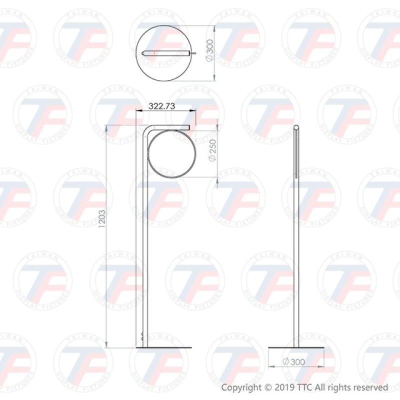 Abmessungen: H 1203 x B 323 x T 300 mm