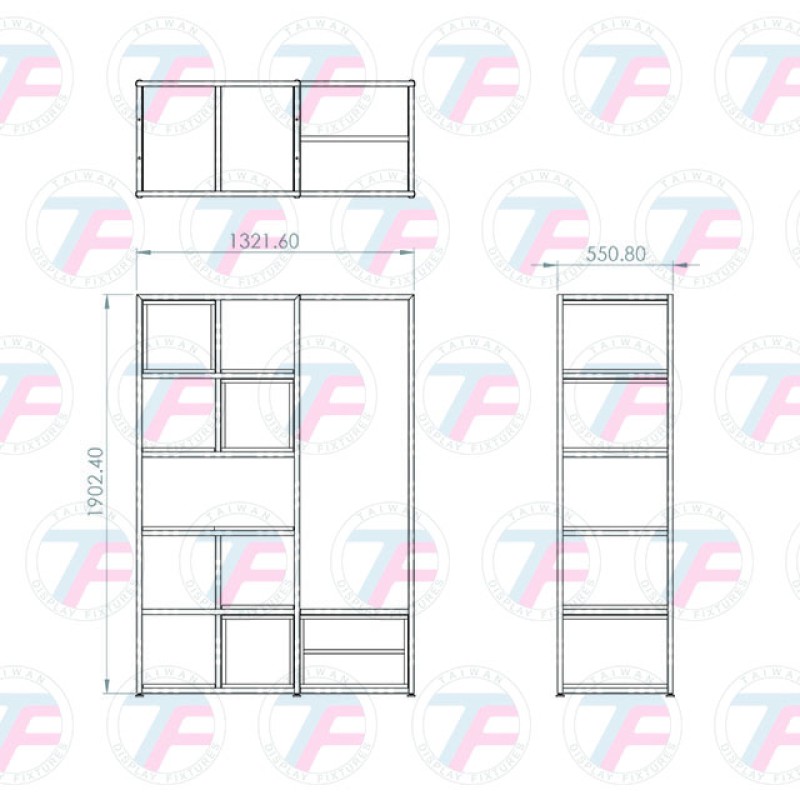 Abmessungen: Gesamtmaße H1902.4 mm x B1321.6mm x T550.8mm