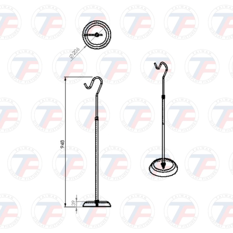 尺寸:Ancho 206mm x Alto 948 ~ 1330mm