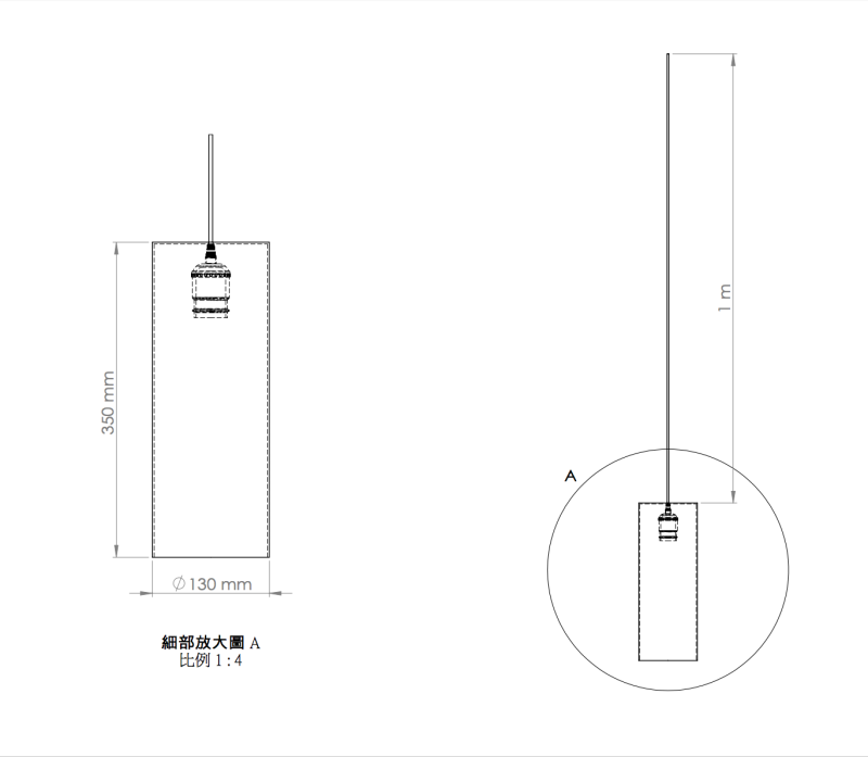 LS-02:Ancho (W) Ø130 mm x Altura (H) 350 mm