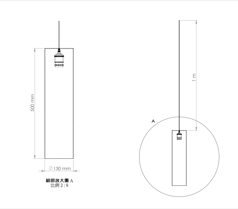 LS-03:Ancho (W) Ø130 mm x Altura (H) 500 mm