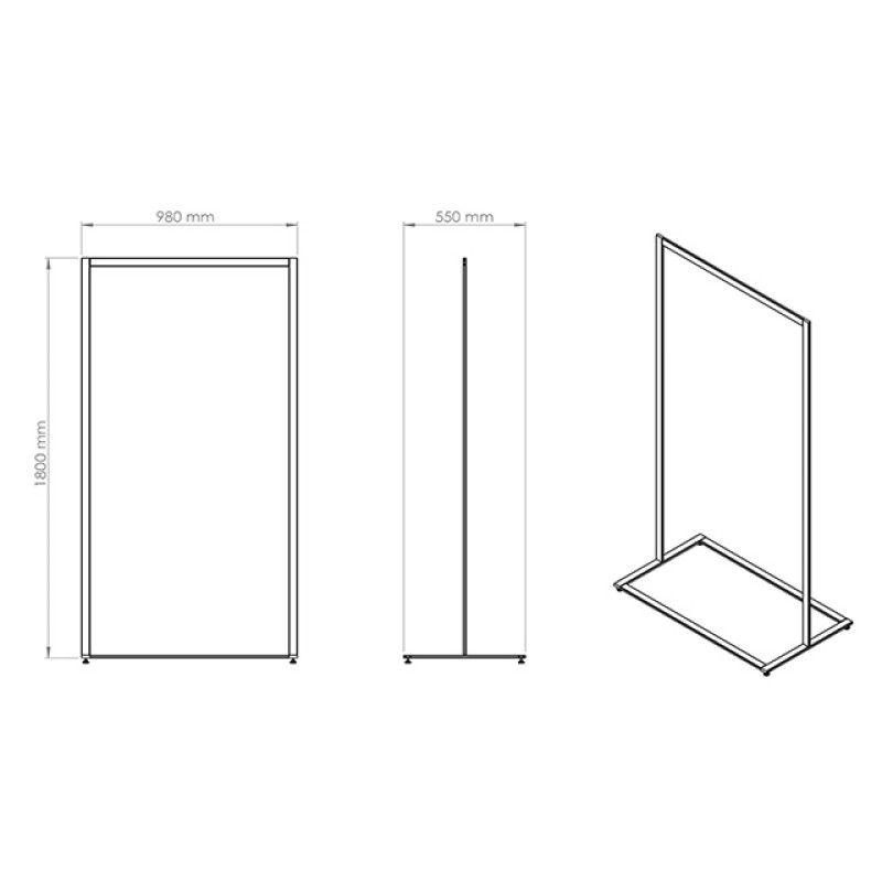 Dimensiones: Largo 980 mm x Ancho 550 mm x Alto 1800 mm