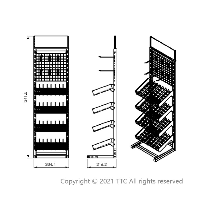 - La estructura principal del bastidor de hierro está reforzada, con buena capacidad de carga; es adecuada para exhibir varios productos durante largos períodos.