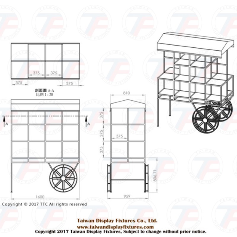 - Diseño de montaje KD, fácil de montar y desmontar, reduce los costos de transporte y almacenamiento, y se puede personalizar el carro según las necesidades para crear un equipo de exhibición acorde con la identidad de la marca。