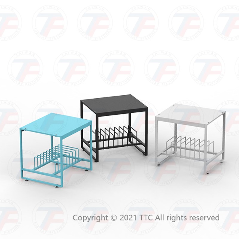 2.Permet de ranger des magazines ou des livres sous le plateau.