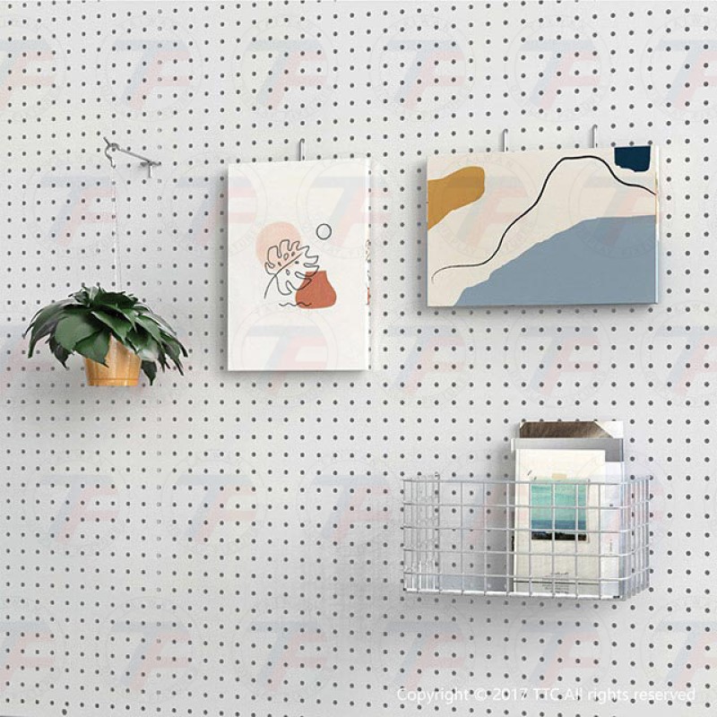 - Panneau perforé standard avec espacement des trous circulaires de 25 mm, compatible avec le crochet pour panneau perforé (PH-02)。