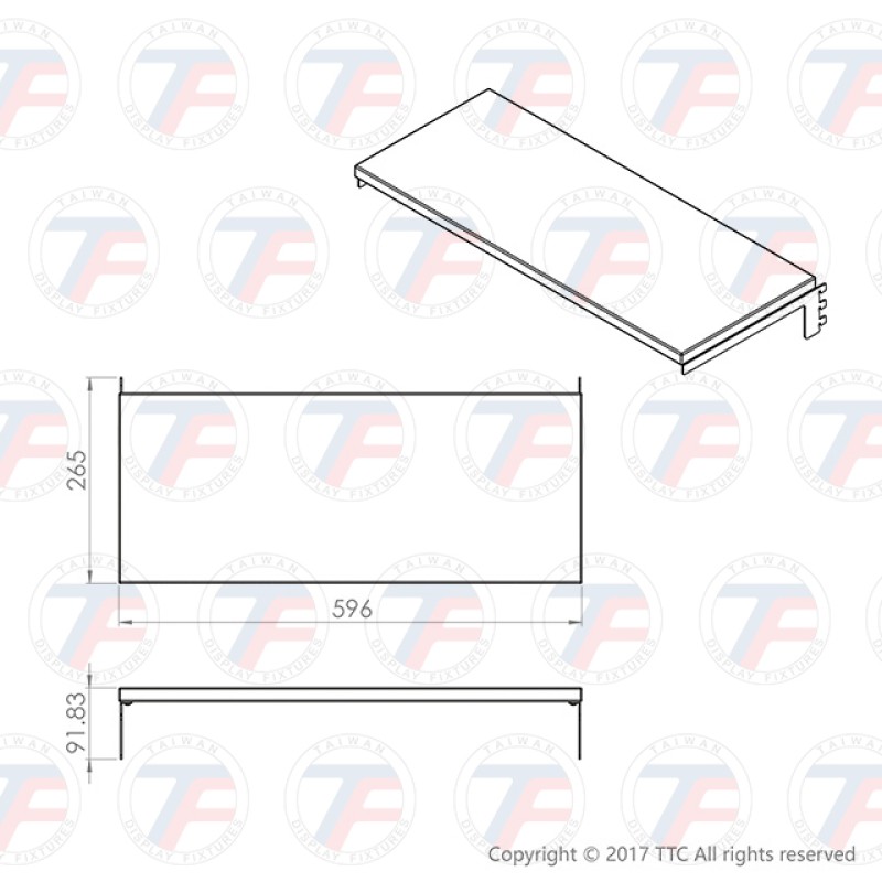 Dimensions: L 596 x Larg. 265 x H 92 mm